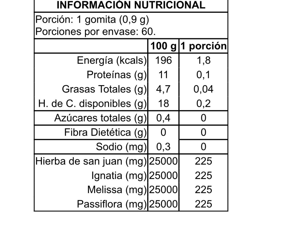 Ingredientes: Hierba de San Juan, Ignatia, Melissa, Passiflora